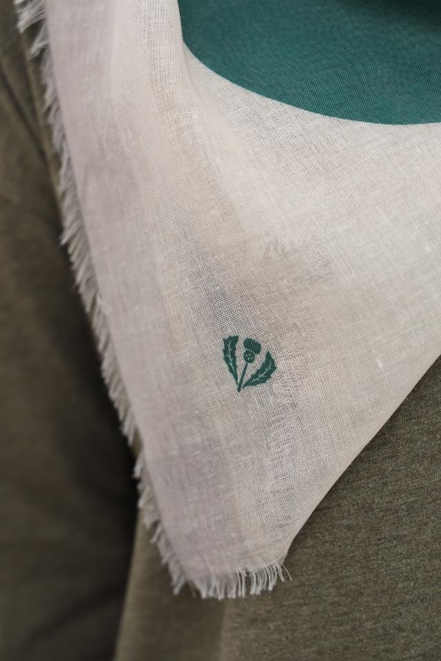 На платке присутствует небольшой логотип бренда в виде растительного орнамента.