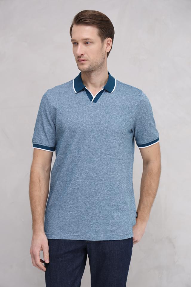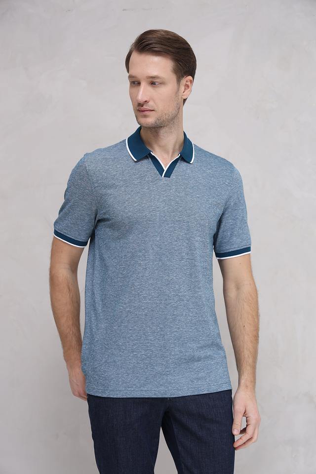 Мужское поло от Bugatti выполнено в приятном голубом цвете с добавлением меланжевой текстуры. Модель отличается контрастной отделкой воротника и коротких рукавов, выполненной в тёмно-синем и белом цветах, что придает ей особый стиль.