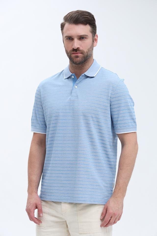 Мужское поло Bugatti голубого цвета с классическим дизайном в полоску. Изготовлено из сочетания хлопка и полиэстера, обеспечивающего комфорт и практичность. Отличный выбор для повседневного гардероба. Состав: полиэстер 50%, хлопок 50%