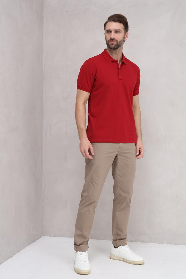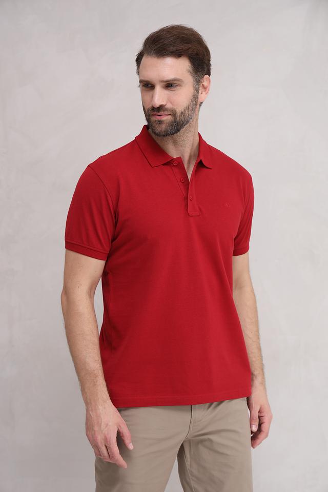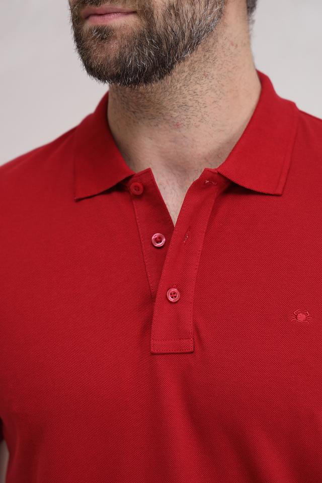 Эта модель имеет короткий рукав и традиционный воротник-поло с тремя пуговицами. На груди расположен небольшой логотип бренда, добавляющий изысканности. Яркий красный цвет делает это поло заметным элементом гардероба.