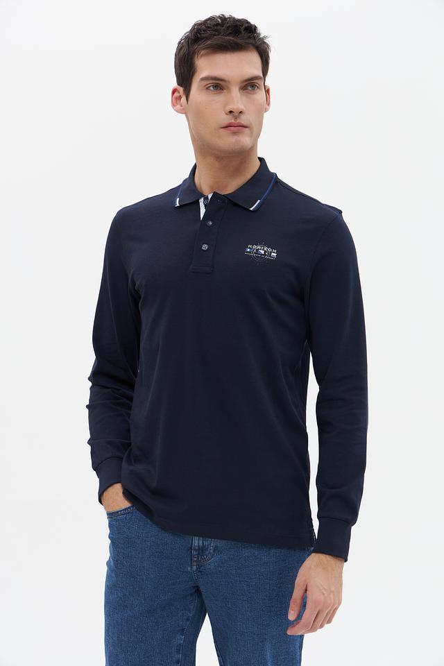 Мужское поло от Granchio выполнено в классическом крое с длинными рукавами. Основной цвет изделия – тёмно-синий, что делает его универсальным и легко сочетаемым с другими элементами гардероба.