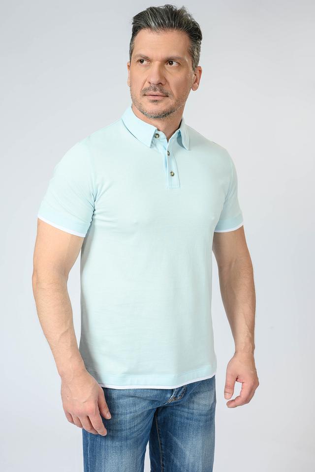 Особенностью данного поло является контрастная белая отделка на воротнике и рукавах, которая придает ему стильный и современный вид. Застежка выполнена на пуговицах в тон изделия.