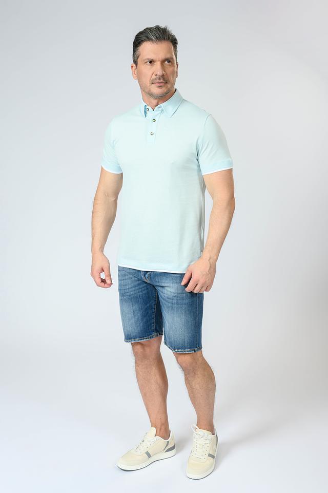 Мужское поло Liu-Jo голубого цвета с коротким рукавом и белой отделкой на воротнике и рукавах. Изготовлено из 100% хлопка, обеспечивающего комфорт и воздухопроницаемость. Состав: хлопок 100%