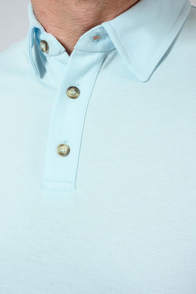 Это мужское поло от бренда Liu-Jo выполнено в нежном голубом цвете. Модель имеет классический крой и короткие рукава, что делает ее идеальным выбором для повседневной носки в теплую погоду.