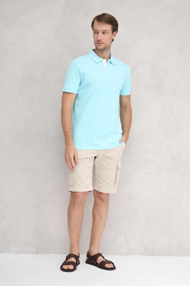 Поло голубого цвета легко сочетается с различными элементами гардероба, от джинсов до шорт. Воротник поло выполнен из эластичной ткани, что обеспечивает удобную посадку. На груди расположена небольшая эмблема бренда.