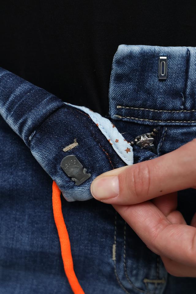 Эти джинсы от Ppep. станут отличным выбором для тех, кто ценит комфорт и стиль. Модель выполнена в голубом цвете и имеет удобный эластичный пояс с ярким оранжевым шнурком для регулировки посадки.
