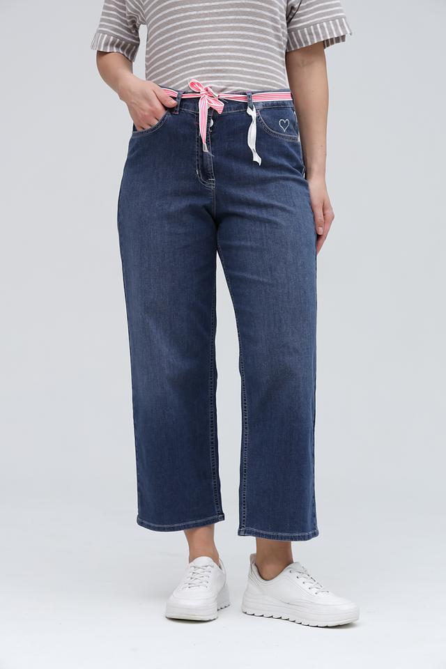 Особый акцент в дизайне этих джинсов – это пояс с контрастными полосками и декоративной завязкой. Также на заднем кармане присутствует вышивка в виде сердца, добавляющая образу игривости и оригинальности. Эти джинсы станут отличным дополнением к вашему гардеробу и подойдут для создания разнообразных образов – от повседневных до более нарядных.