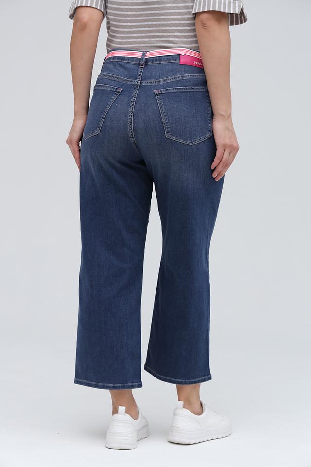 Джинсы выполнены из высококачественного хлопка, дополненного полибутилентерефталатом и эластаном. Благодаря этому составу, они приятны к телу, хорошо держат форму и обеспечивают свободу движений. Кюлоты имеют удобную посадку по талии и широкую штанину, которая визуально удлиняет ноги.