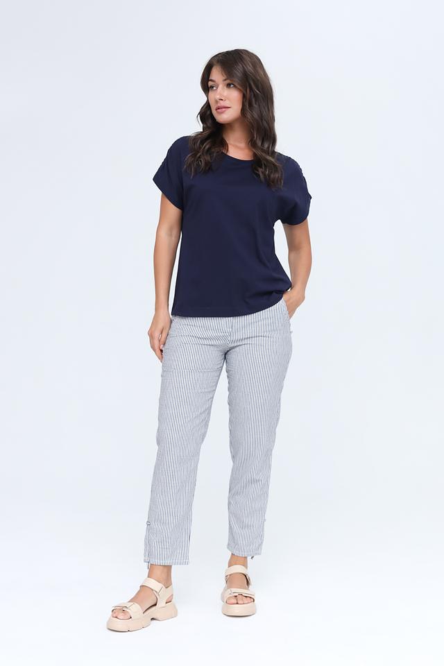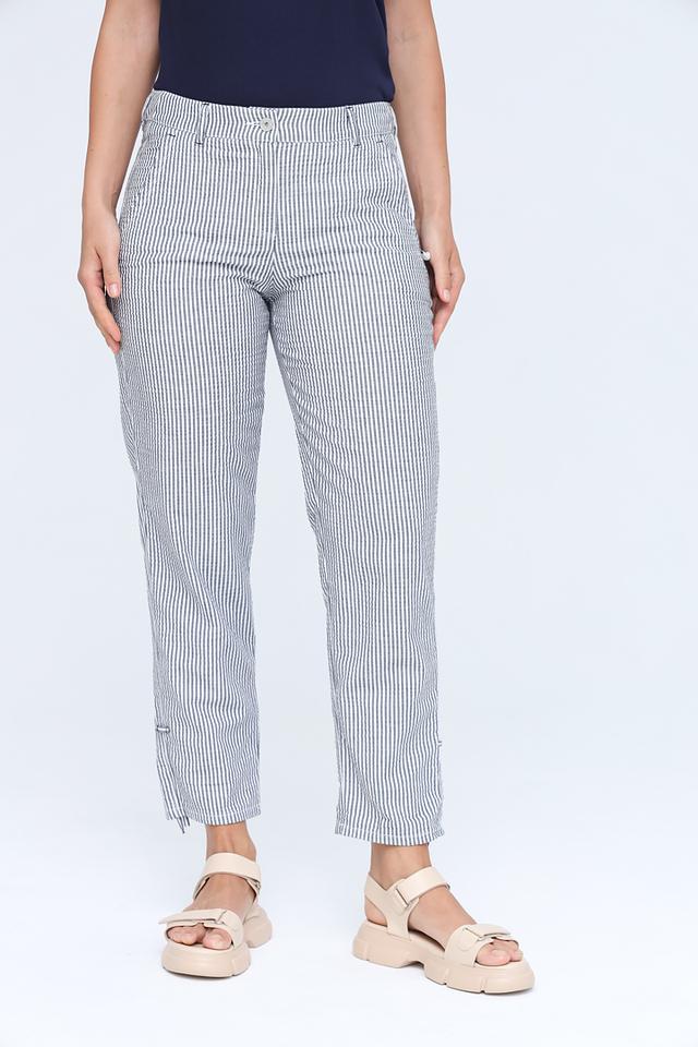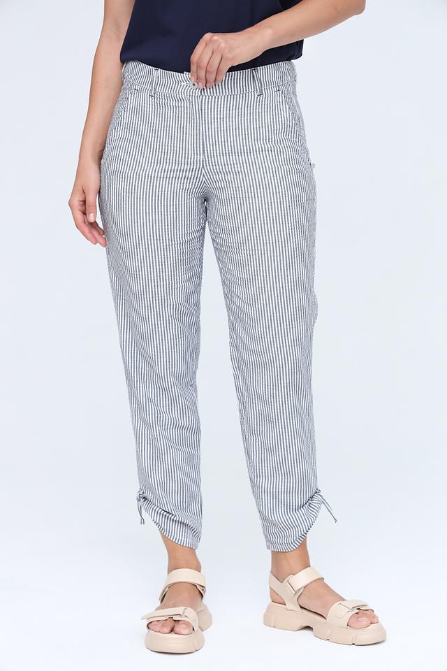 Женские брюки Ppep. синего цвета в полоску – стильное и комфортное решение для повседневного гардероба. Модель выполнена из мягкой ткани с добавлением вискозы, обеспечивающей приятные ощущения при носке. Брюки имеют зауженный к низу силуэт и удобную посадку. Состав: вискоза 51%, хлопок 39%, полиакрил 10%