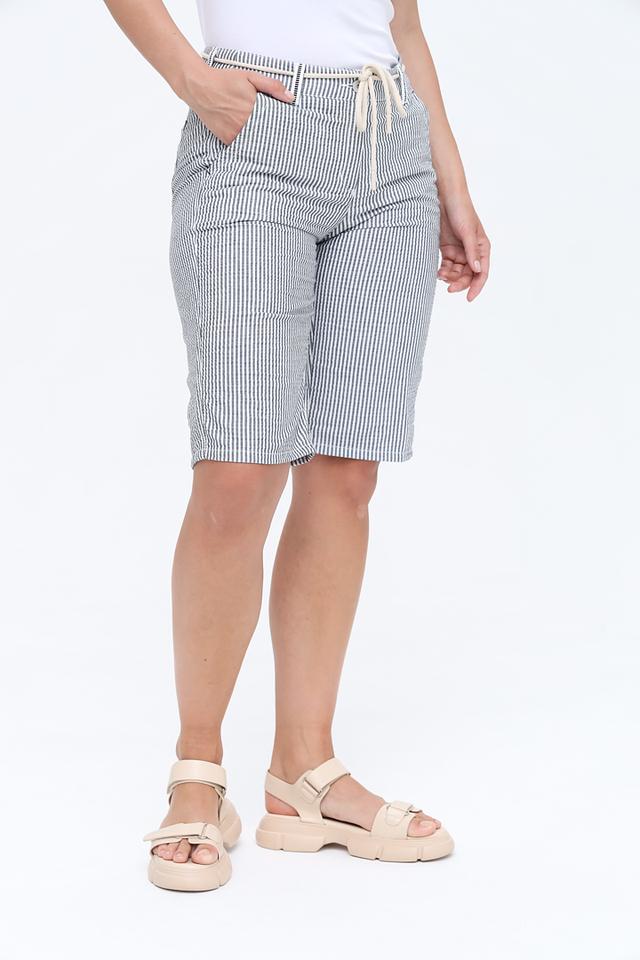 Женские шорты Ppep. синего цвета в классическую полоску – удобная и стильная модель на каждый день. Шорты с эластичным поясом и завязками обеспечивают комфортную посадку и свободу движений. Состав: вискоза 51%, хлопок 39%, полиакрил 10%
