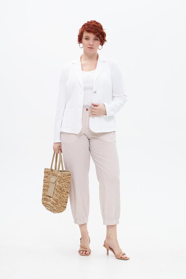 Брюки имеют зауженный крой и длину 7/8, что делает их идеальным выбором для создания модных образов. Эластичный пояс с декоративным шнурком обеспечивает комфортную посадку по фигуре.