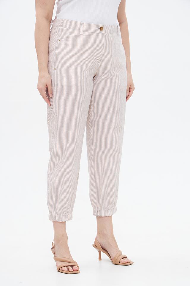 Стильные брюки Ppep бежевого цвета в тонкую полоску станут отличным дополнением к вашему гардеробу. Изготовлены из смесового состава хлопка и полиэстера, обеспечивающего комфорт и практичность. Состав: полиэстер 50%, хлопок 50%