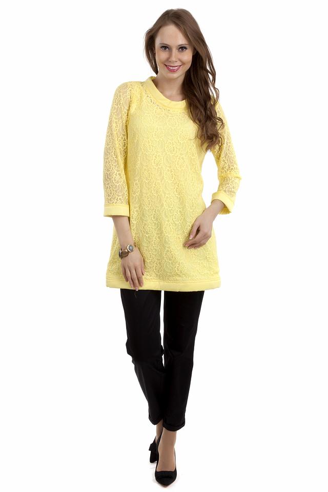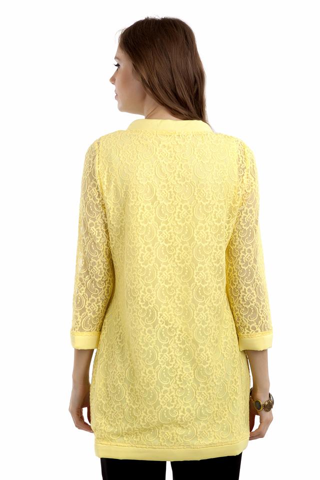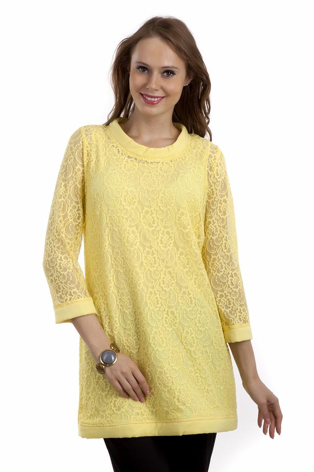 Жёлтая блуза Precious — идеальное решение для создания лёгких и изысканных образов. Эта женская блузка выполнена из высококачественного кружевного полотна с утончённым цветочным узором, добавляя нарядности вашему гардеробу. Стильная модель прекрасно подходит как для повседневного ношения, так и для особых случаев.