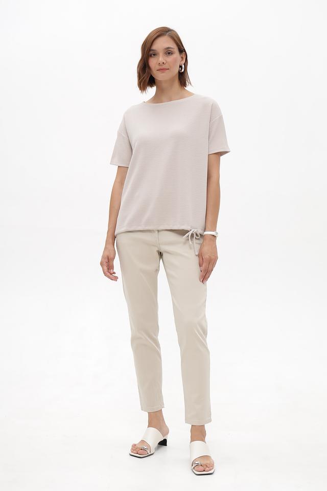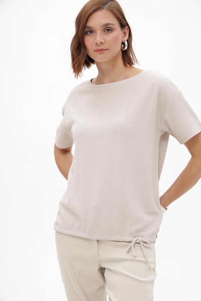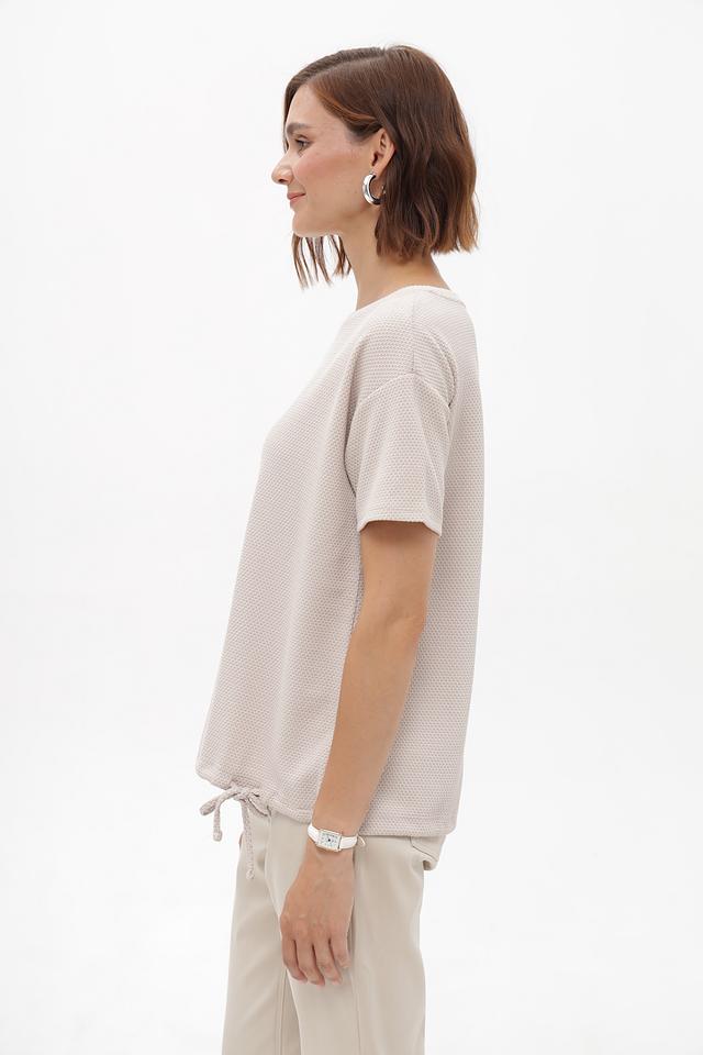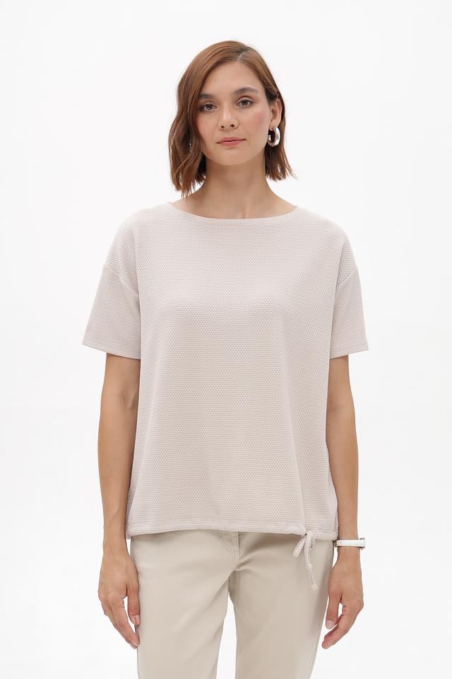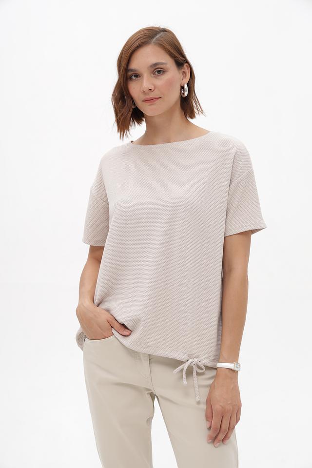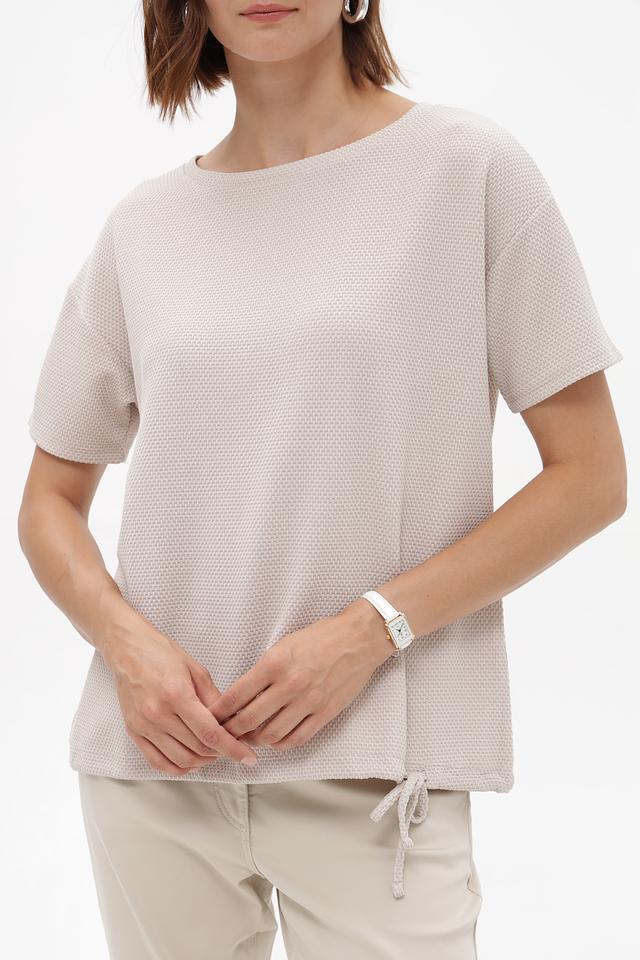 Бежевый пуловер от Betty Barclay из смесовой ткани с фактурной поверхностью. Короткие рукава и сборка на завязках по бокам создают комфортный и стильный силуэт. Состав: полиэстер, вискоза, эластан. Состав: полиэстер 75%, вискоза 22%, эластан 3%