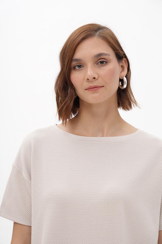 Модель имеет прямой, свободный крой, который обеспечивает комфортную посадку по фигуре. Круглый вырез горловины и короткие рукава делают пуловер идеальным выбором для теплой погоды.