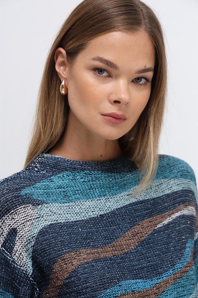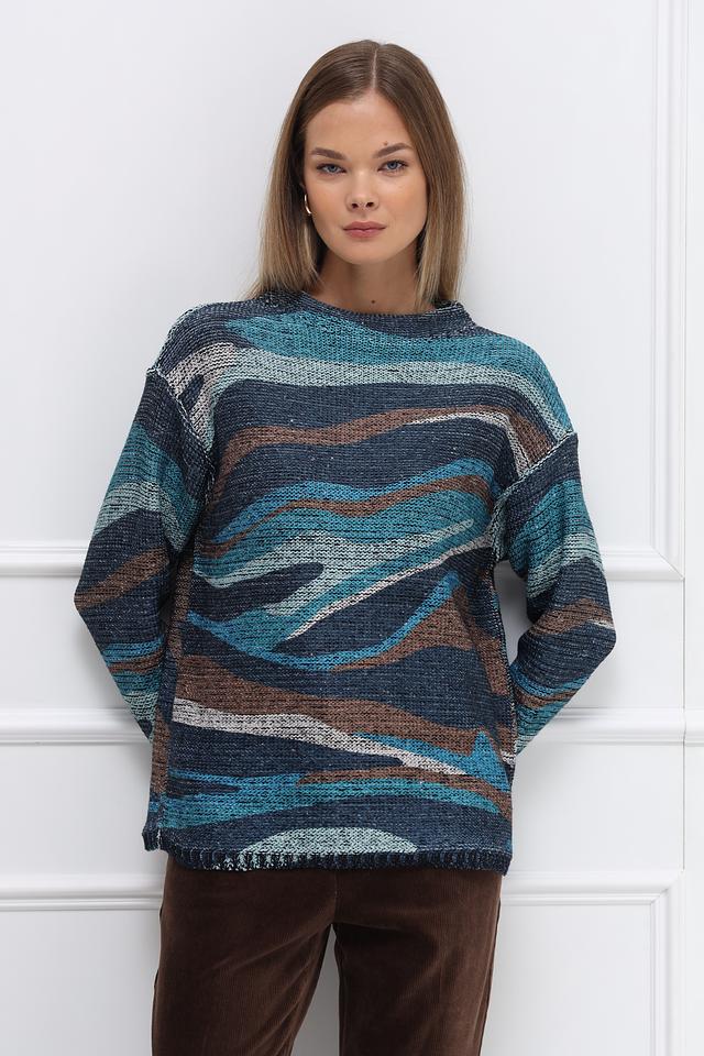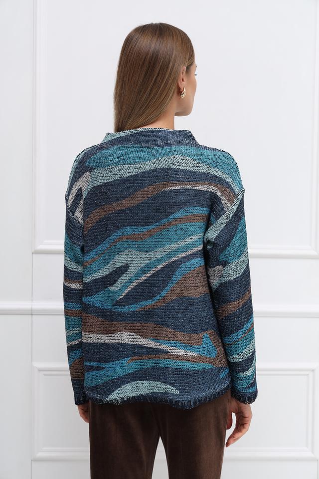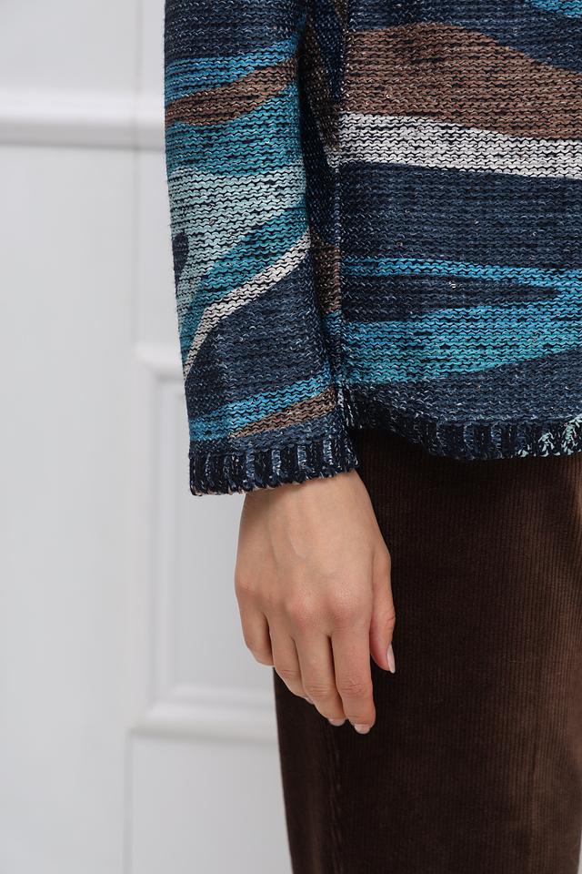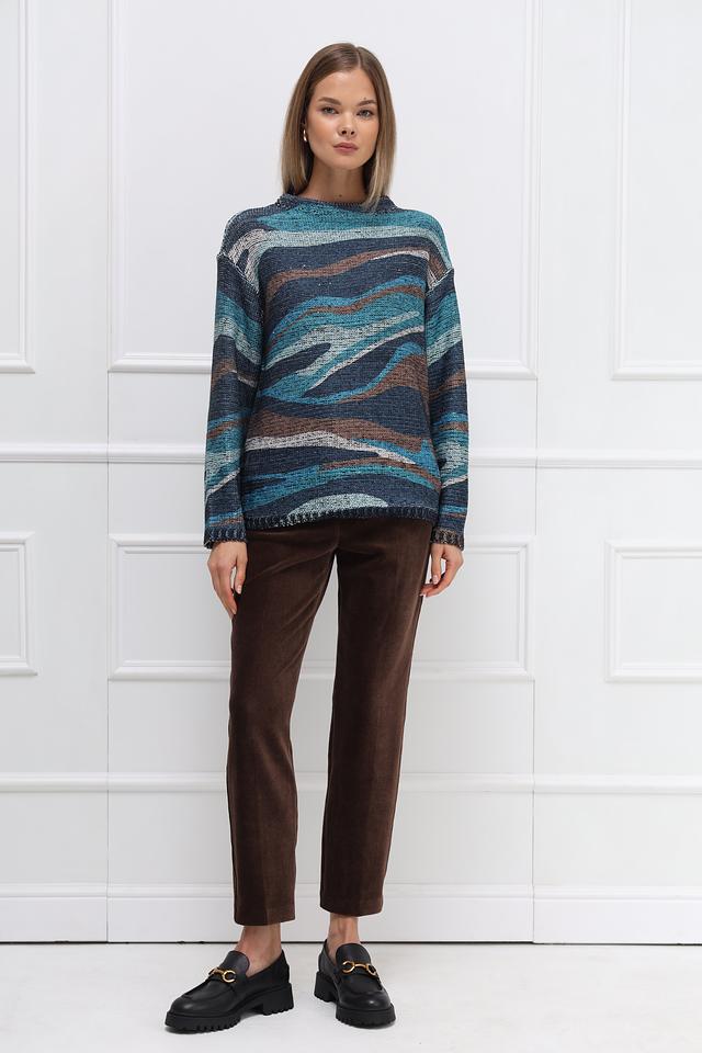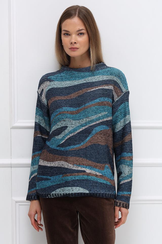 Этот стильный пуловер от Betty Barclay выполнен в свободной посадке, что обеспечивает максимальный комфорт. Преобладающий цвет – синий, дополненный коричневыми и серыми оттенками, создающими эффектный геометрический узор.