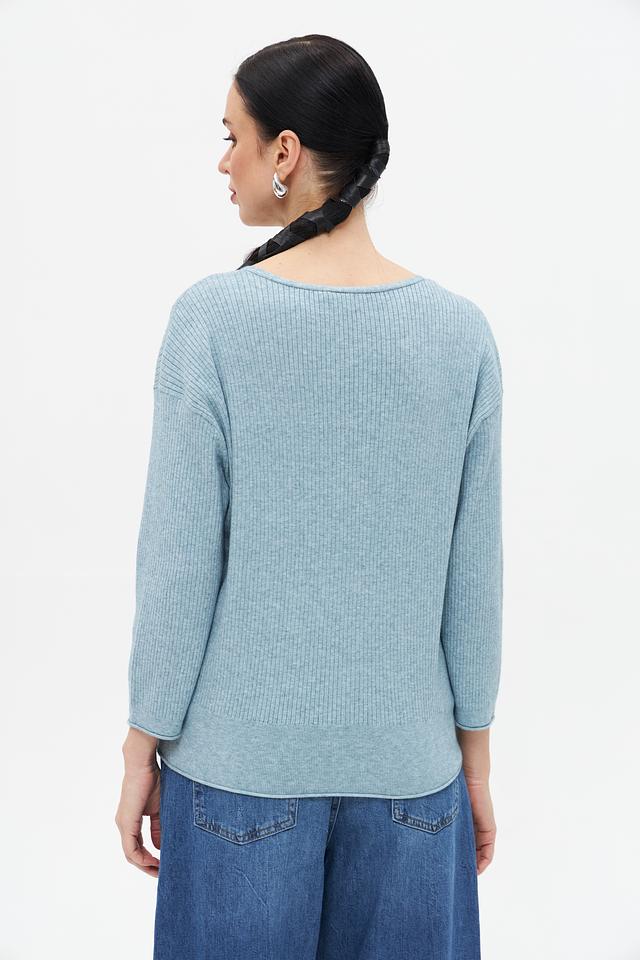 Текстура изделия – мелкий рубчик, который придает ему изысканность и визуальную привлекательность. Голубой цвет пуловера универсален и легко сочетается с различными элементами одежды, позволяя создавать разнообразные стильные образы.
