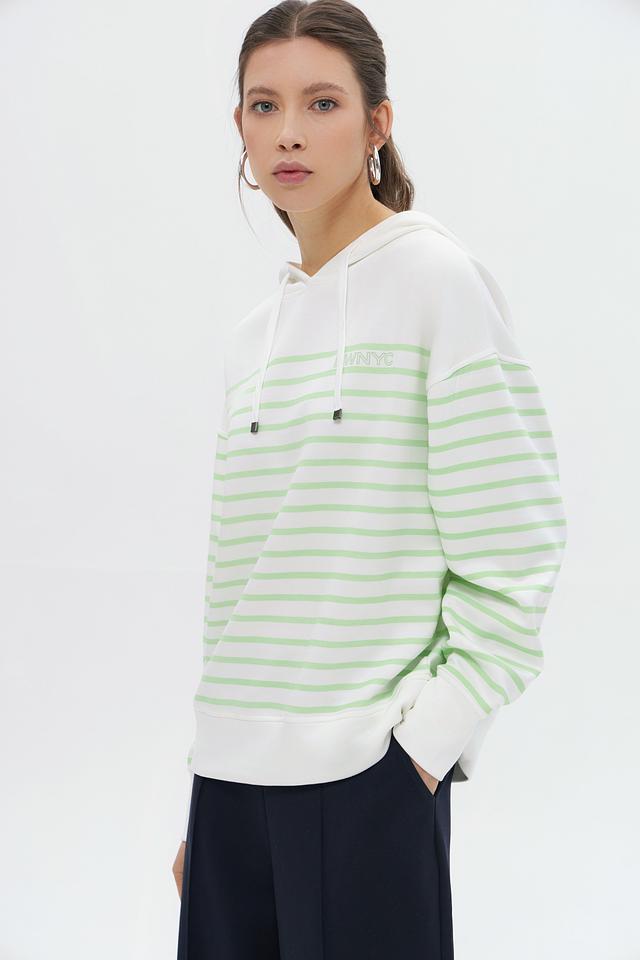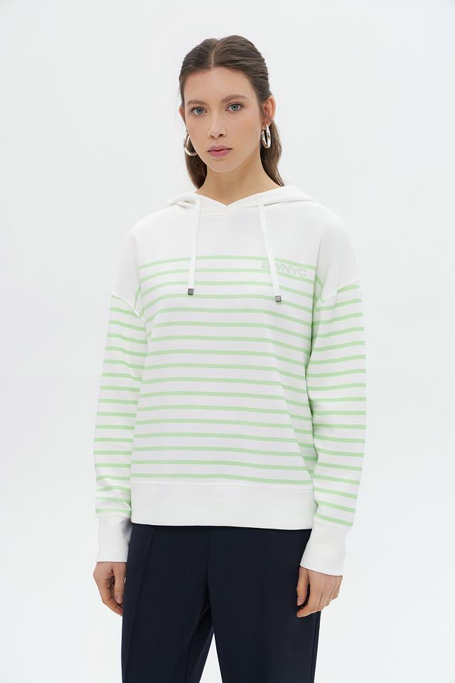 Женский пуловер Broadway белого цвета с зелёными полосками и капюшоном станет отличным дополнением к вашему гардеробу. Модель выполнена из мягкого и приятного к телу трикотажа, обеспечивающего комфорт в течение дня. Состав: полиэстер 49%, вискоза 43%, эластан 8%