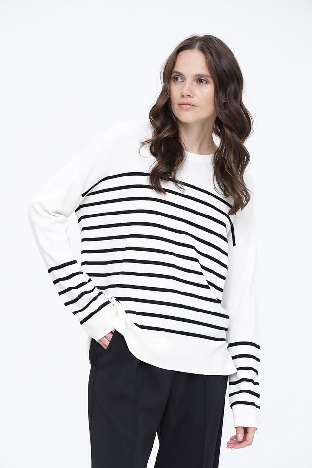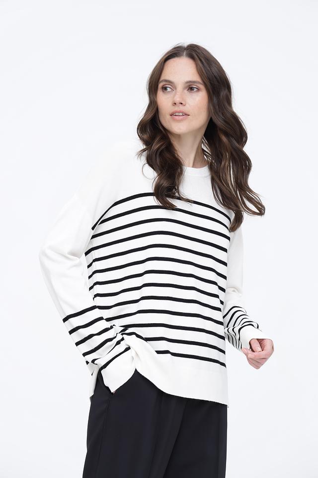 Этот пуловер от Broadway станет отличным дополнением к вашему гардеробу. Он выполнен в классическом дизайне с горизонтальными полосами белого и черного цвета, что делает его универсальным и легко сочетаемым с другой одеждой.