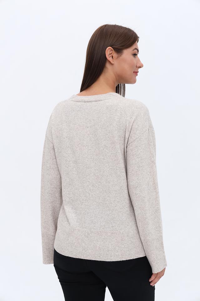 Этот пуловер идеально сочетается с джинсами, брюками или юбками. Его можно носить как самостоятельно, так и под пиджак или пальто. Благодаря своему нейтральному цвету, он легко вписывается в любой стиль и позволяет создавать разнообразные образы.