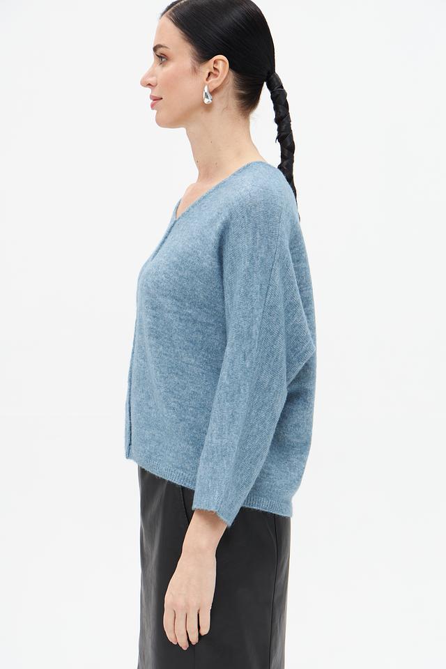 Женский пуловер Broadway голубого цвета с V-образным вырезом и рукавами 3/4. Модель выполнена из мягкого и приятного к телу сочетания полиэстера, акрила и шерсти, что обеспечивает комфорт в носке. Состав: полиэстер 80%, акрил 11%, шерсть 6%, спандекс 3%