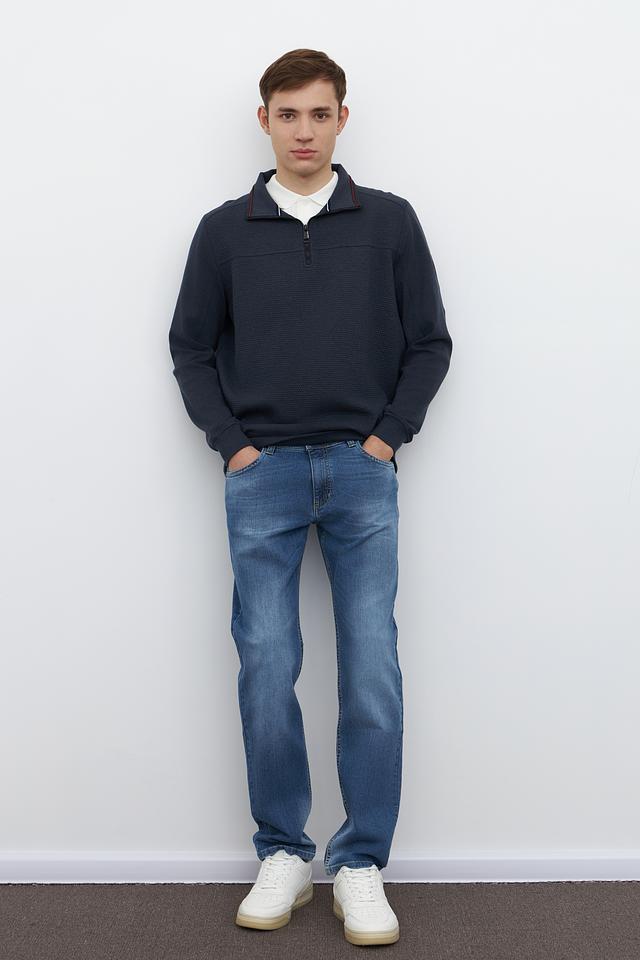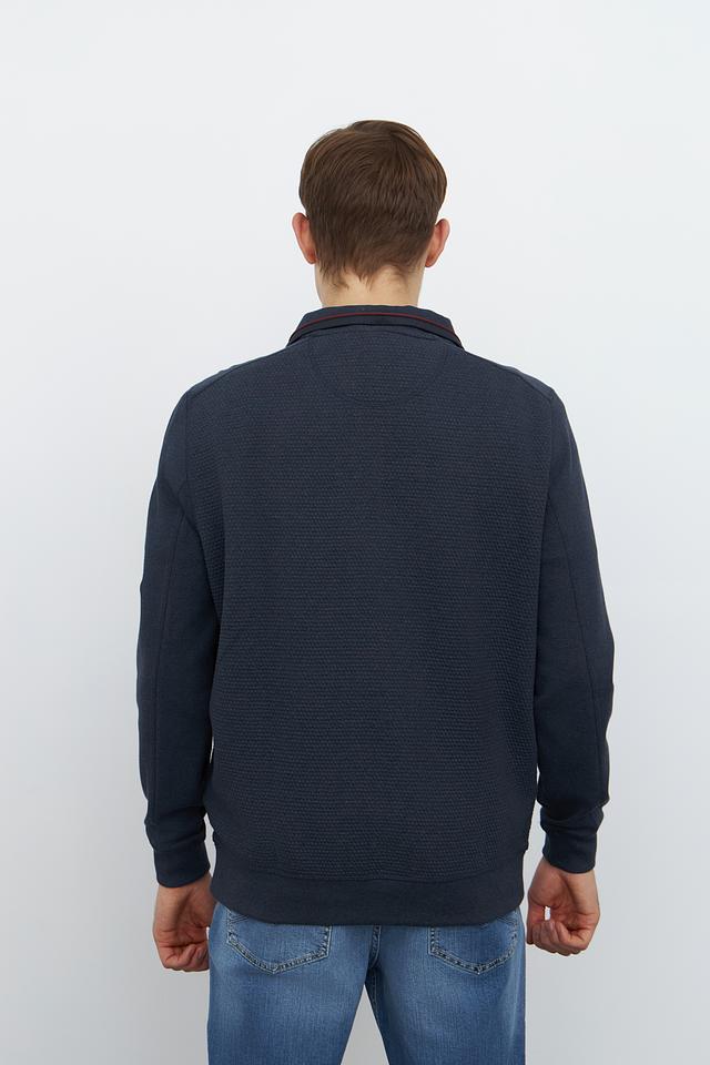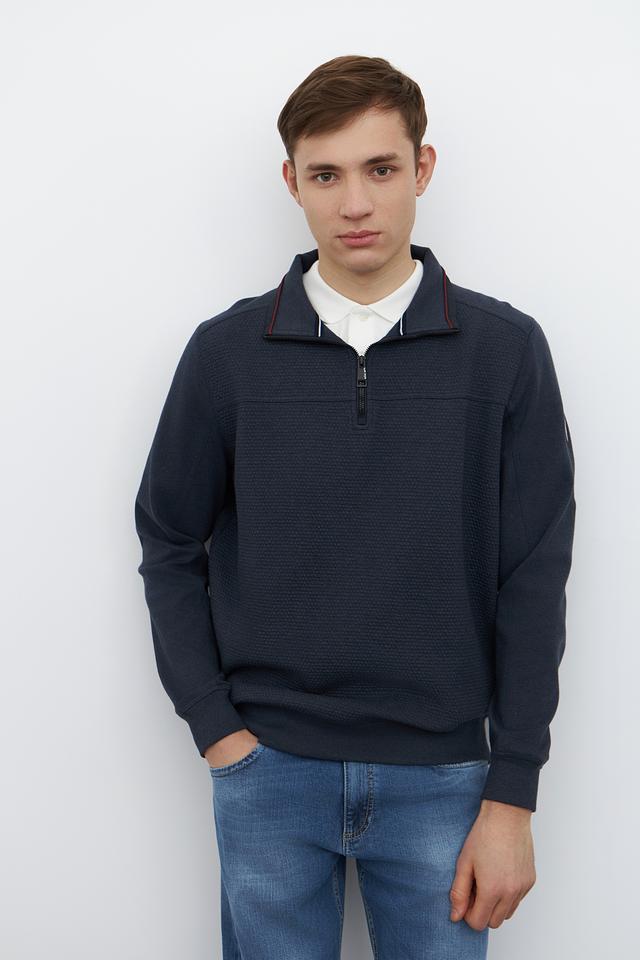 Мужской джемпер Casa Moda темно-синего цвета с короткой молнией и текстурной вязкой. Модель дополнена декоративной отделкой на воротнике и нашивкой на рукаве, что придает ей стильный и современный вид. Состав: хлопок 62%, полиэстер 35%, эластан 3%