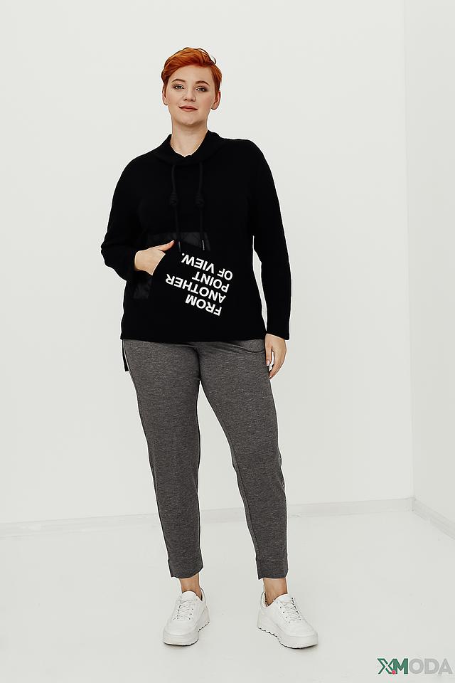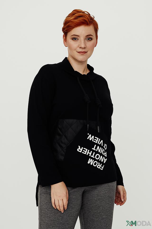 Чёрный пуловер от Doris Streich с актуальным принтом и удобным капюшоном. Модель выполнена из мягкого и приятного к телу сочетания хлопка и модала, обеспечивая комфорт в носке. Стильное и практичное решение для повседневного гардероба. Состав: хлопок 49%, модал 49%, эластан 2%