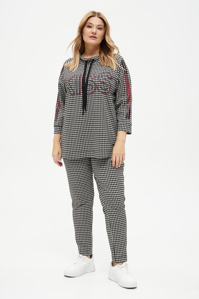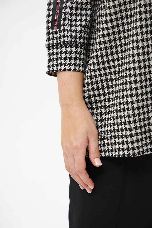 Этот стильный пуловер от Frapp станет отличным дополнением к вашему гардеробу. Модель выполнена в классическом чёрно-белом цвете с актуальным принтом "гусиная лапка", который придаёт образу элегантность.