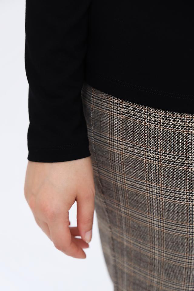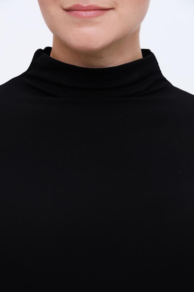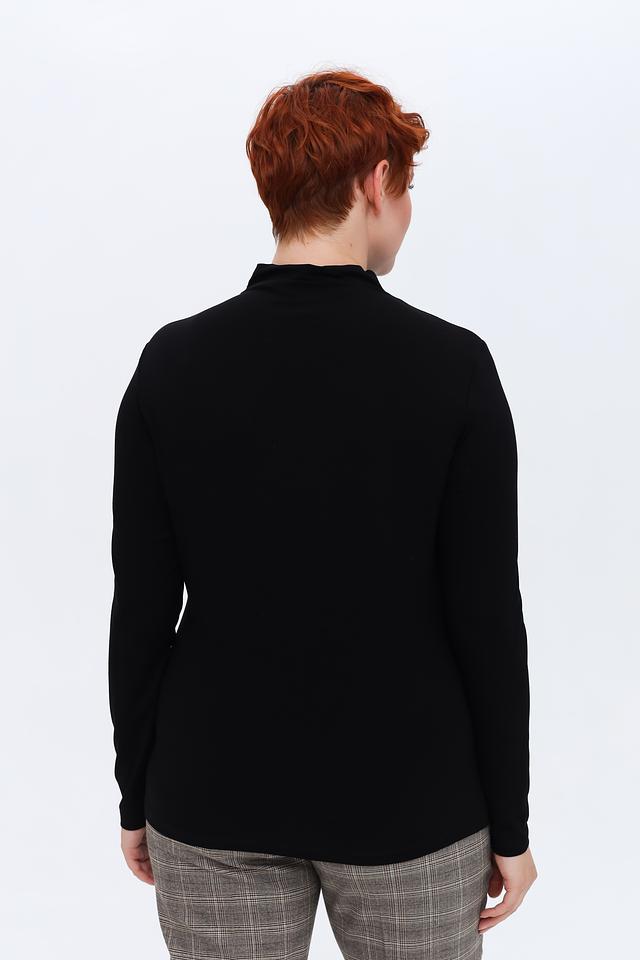 Водолазка имеет классический крой с длинными рукавами и облегающим силуэтом. Высокий воротник-стойка элегантно обрамляет шею, создавая лаконичный и стильный образ. Благодаря нейтральному чёрному цвету, водолазку легко сочетать с различными предметами одежды – от классических брюк и юбок до джинсов и кардиганов.