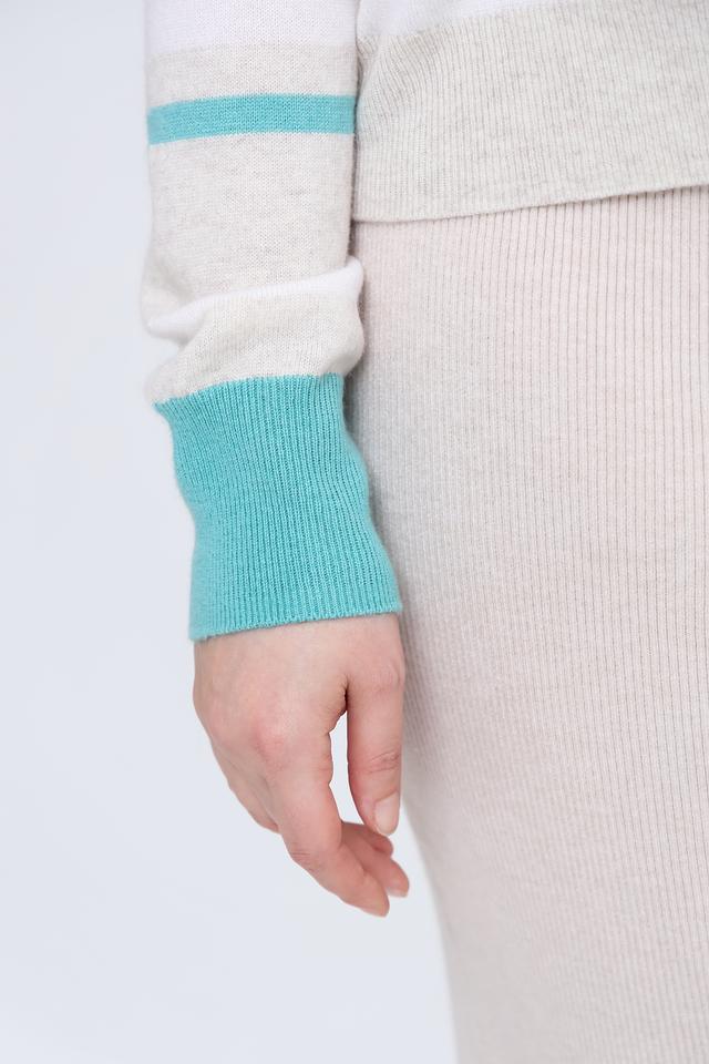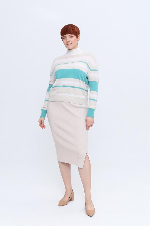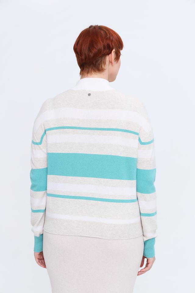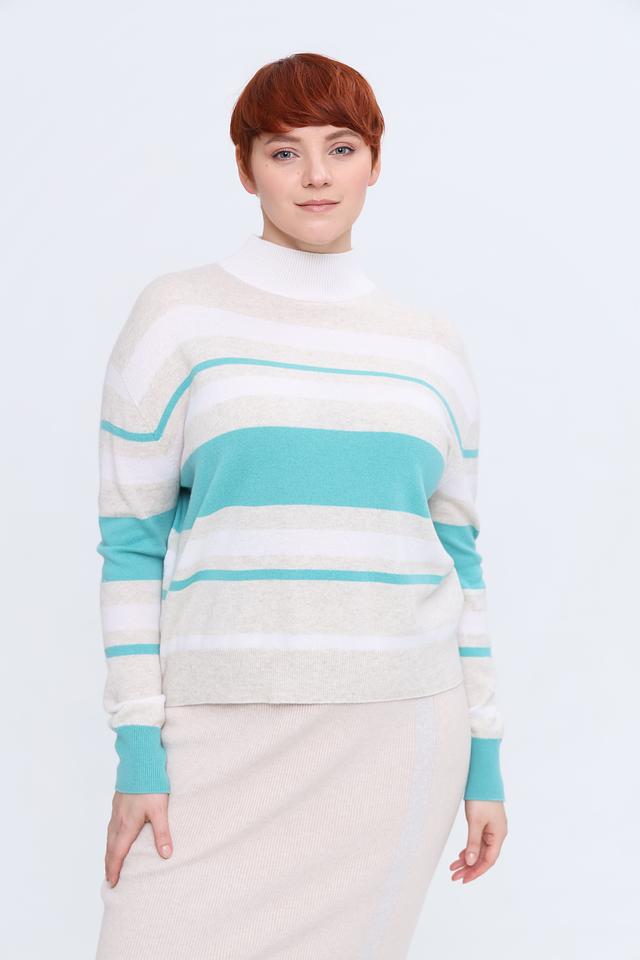 Женский пуловер Gerry Weber бирюзового цвета с полоской – стильная и комфортная модель из высококачественной шерсти и кашемира. Высокий воротник и свободный крой обеспечивают удобную посадку и актуальный образ. Состав: шерсть 90%, кашемир 10%