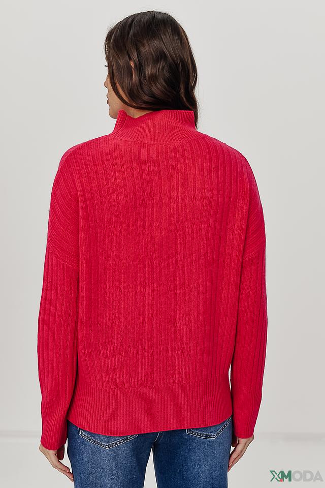 Модель имеет прямой крой и высокий воротник-стойку, который добавляет элегантности образу. Пуловер выполнен в насыщенном малиновом цвете, который станет ярким акцентом в вашем гардеробе.