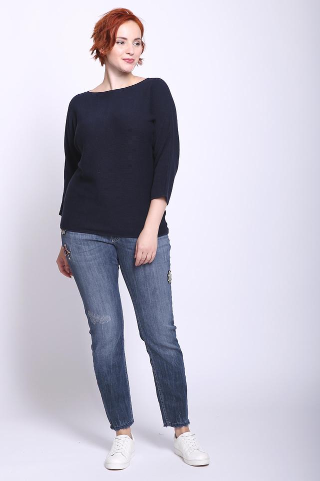 Вырез горловины – лодочка, что делает модель элегантной и женственной. Пуловер идеально подходит для создания повседневных и деловых образов. Он легко сочетается с джинсами, брюками или юбками.
