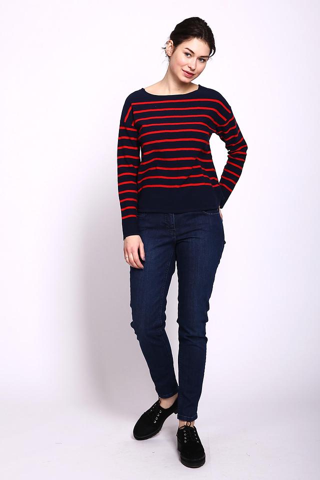 Синий пуловер от Gerry Weber с классическим полосатым узором. Изготовлен из 100% хлопка, обеспечивающего комфорт и воздухопроницаемость. Идеально подходит для создания повседневных образов. Состав: хлопок 100%
