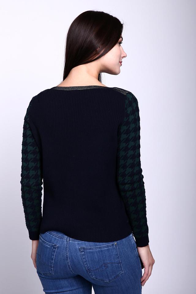 Этот пуловер от Gerry Weber – идеальный выбор для создания элегантного и уютного образа. Пуловер выполнен в тёмно-зелёном цвете с классическим рисунком "гусиная лапка", который придает ему изысканность.