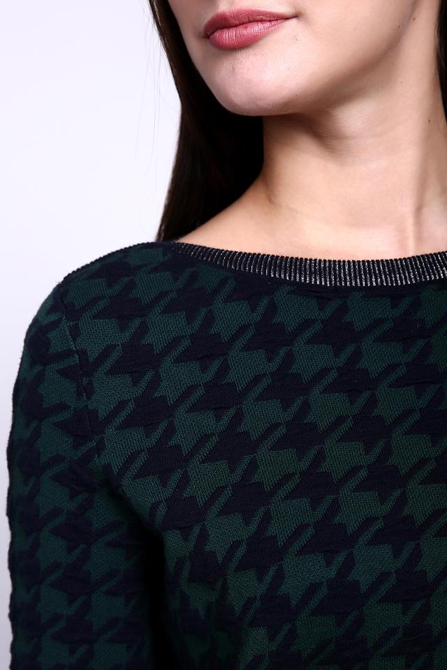 Женский пуловер Gerry Weber тёмно-зелёного цвета с классическим рисунком "гусиная лапка" станет стильным дополнением к вашему гардеробу. Изготовлен из мягкого хлопка, обеспечивающего комфорт в носке. Состав: хлопок 100%