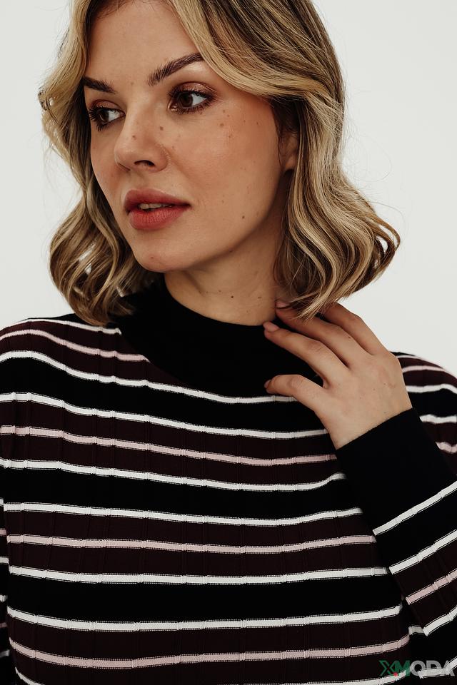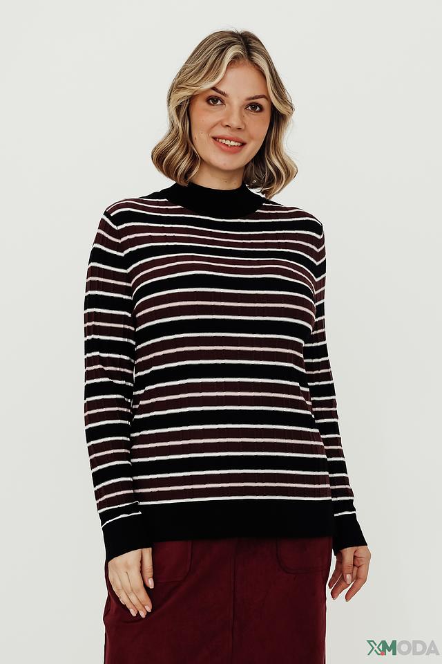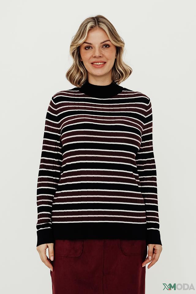 Женский пуловер Gerry Weber чёрно-белого цвета с полоской и высоким горлом. Модель выполнена из мягкого трикотажа с добавлением вискозы, полиамида и эластана для комфорта и хорошей посадки. Состав: вискоза 82%, полиамид 15%, эластан 3%
