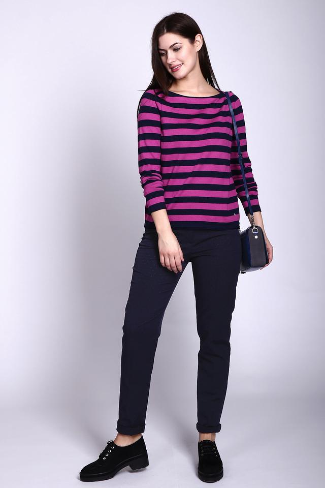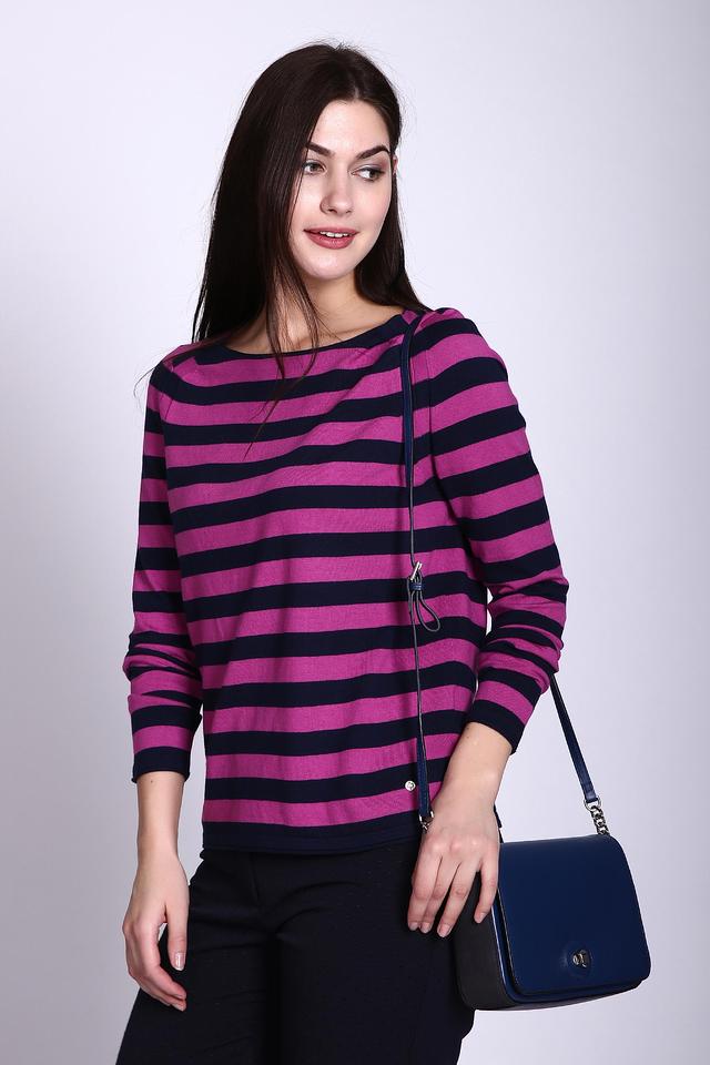 Женский пуловер Gerry Weber сине-розового цвета в классическую полоску. Изготовлен из мягкого трикотажа с добавлением хлопка и вискозы, обеспечивающего комфорт и приятные ощущения при носке. Стильный и универсальный выбор для создания повседневных образов. Состав: хлопок 49%, вискоза 33%, полиамид 18%