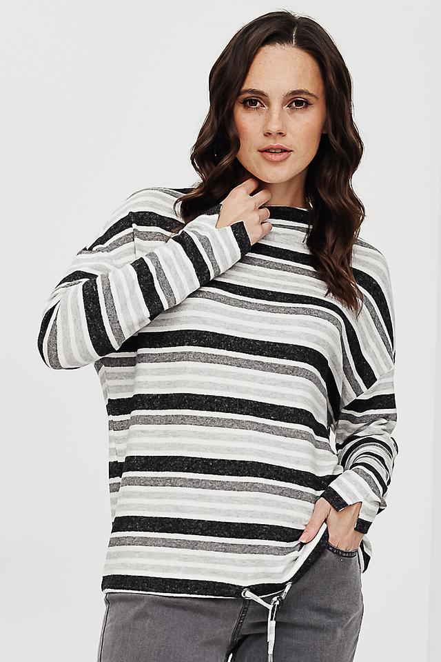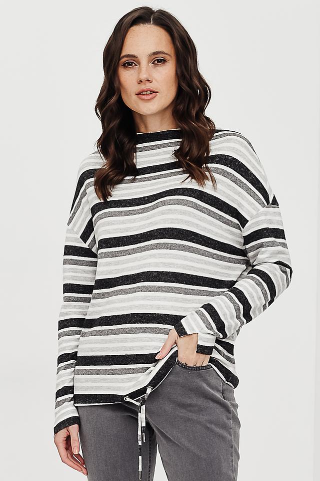 Этот стильный пуловер от Gerry Weber идеально подходит для создания повседневных образов. Пуловер выполнен в горизонтальную полоску, сочетающую в себе оттенки серого и белого, что придает ему современный и универсальный вид.