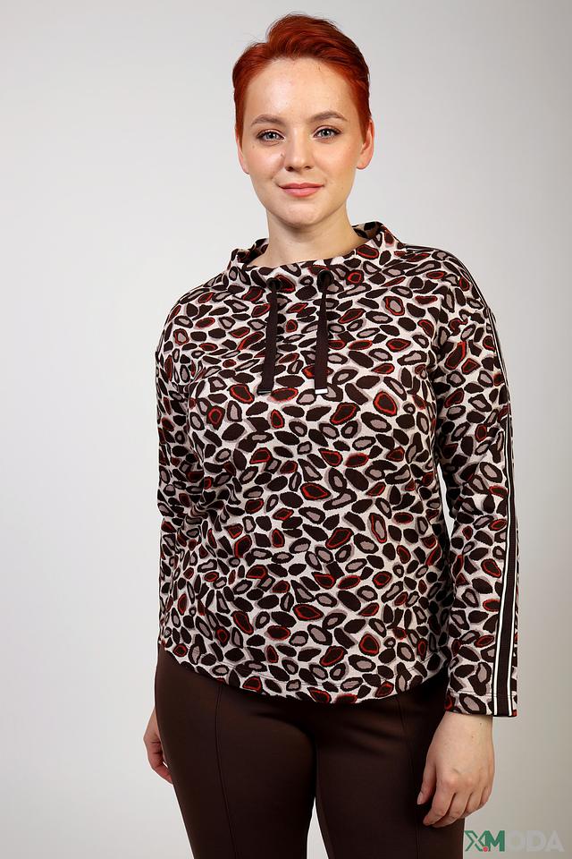 Женский пуловер Lebek бежевого цвета с ярким леопардовым принтом и удобным капюшоном. Модель дополнена контрастными полосами на рукавах, что придает ей спортивный шик и динамичный вид. Состав: полиэстер 85%, вискоза 12%, эластан 3%