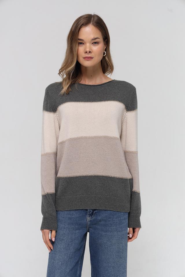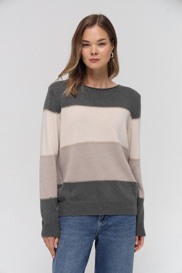 Бежевый пуловер от Lebek с горизонтальными полосами – стильное и комфортное решение для повседневного гардероба. Модель выполнена из мягкого трикотажа с добавлением шерсти, что обеспечивает тепло и уют. Состав: полиамид 43%, полиакрил 39%, шерсть 18%