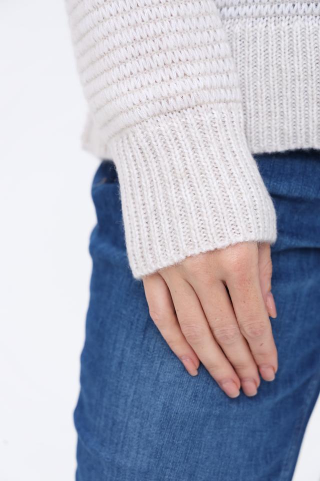Благодаря нейтральному бежевому цвету, этот пуловер легко сочетается с другими элементами гардероба, позволяя создавать разнообразные стильные образы. Он прекрасно дополнит как повседневный, так и более нарядный лук.