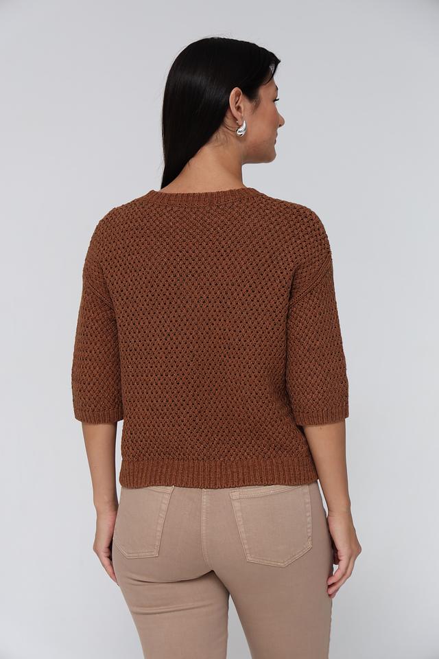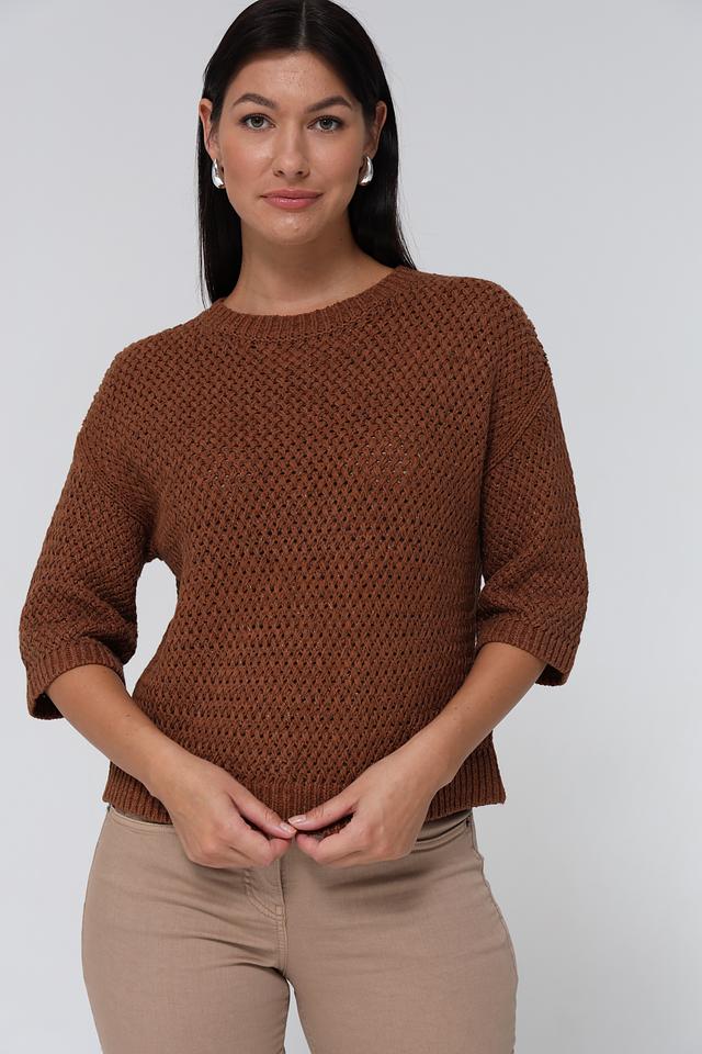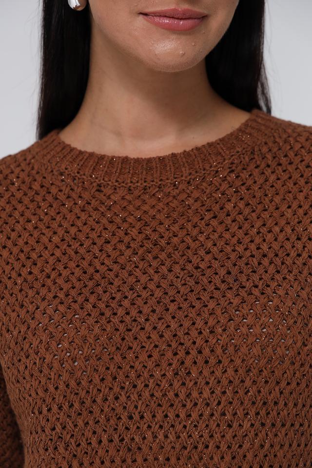 Пуловер Lecomte коричневый с ажурной вязкой