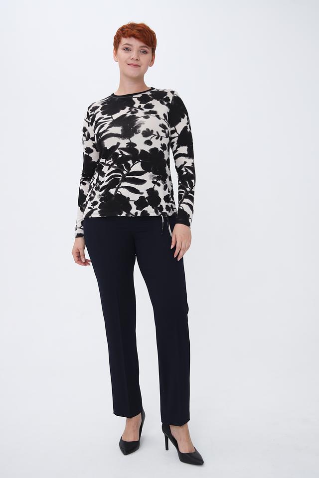 Модель имеет удобный крой с длинными рукавами и классическим круглым вырезом горловины. Пуловер изготовлен из высококачественной вискозы (95%) с добавлением эластана (5%), что обеспечивает мягкость, комфорт и хорошую посадку по фигуре.
