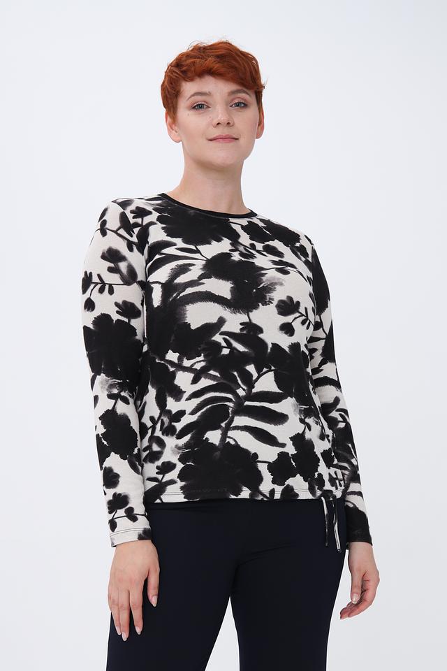 Женский пуловер Lecomte бежевого цвета с эффектным цветочным принтом. Изготовлен из мягкой вискозы с добавлением эластана для комфорта и хорошей посадки. Идеальный выбор для создания стильного и уютного образа. Состав: вискоза 95%, эластан 5%