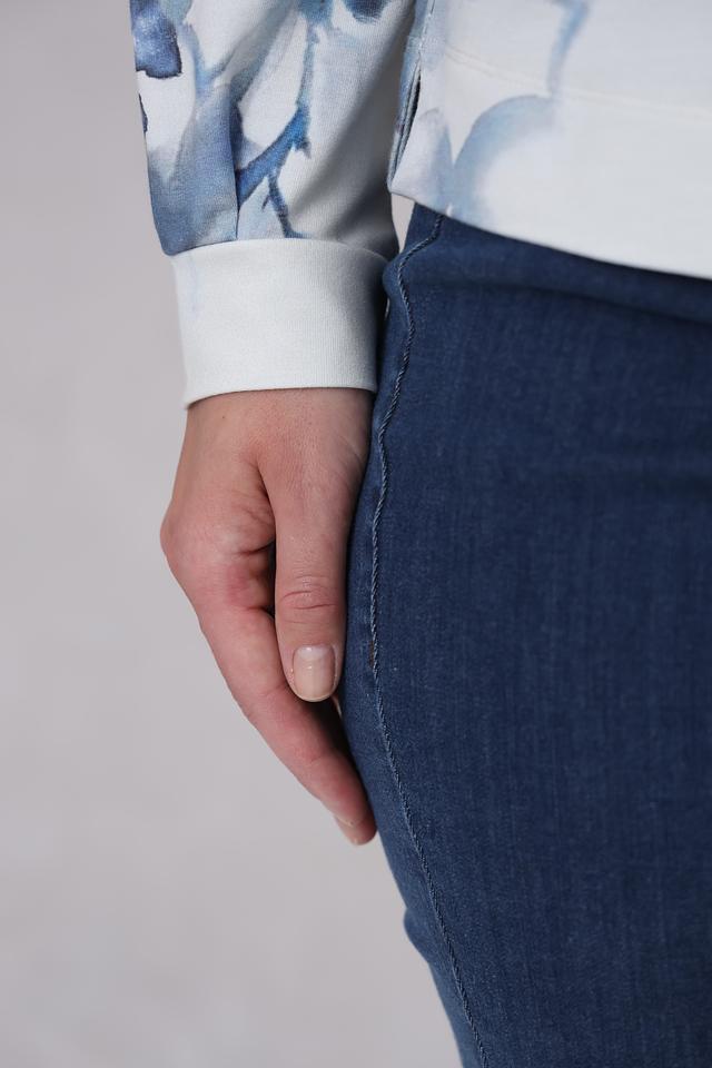 Модель имеет удобный круглый вырез горловины и длинные рукава. Пуловер изготовлен из высококачественного сочетания хлопка (47%), модала (47%) и эластана (6%), что обеспечивает мягкость, комфорт и хорошую посадку по фигуре. Эластан в составе добавляет изделию эластичность, благодаря чему пуловер не сковывает движений.