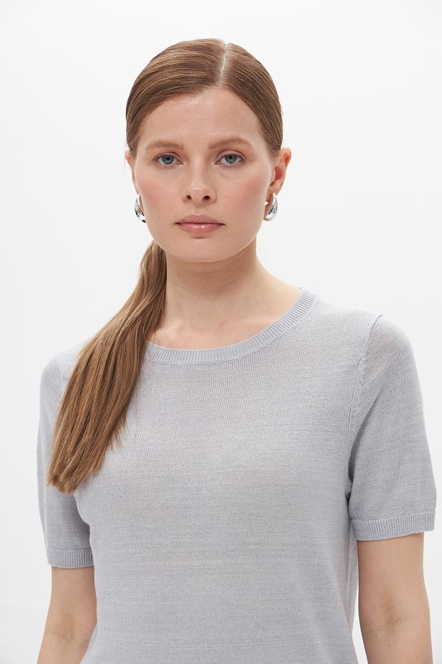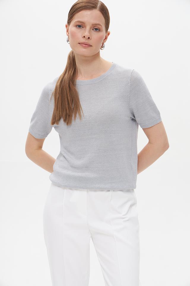Модель имеет прямой крой и короткие рукава, что придает ей современный и лаконичный вид. Вырез горловины – округлый, классический. Внизу пуловер имеет резинку, которая обеспечивает аккуратную посадку по фигуре.