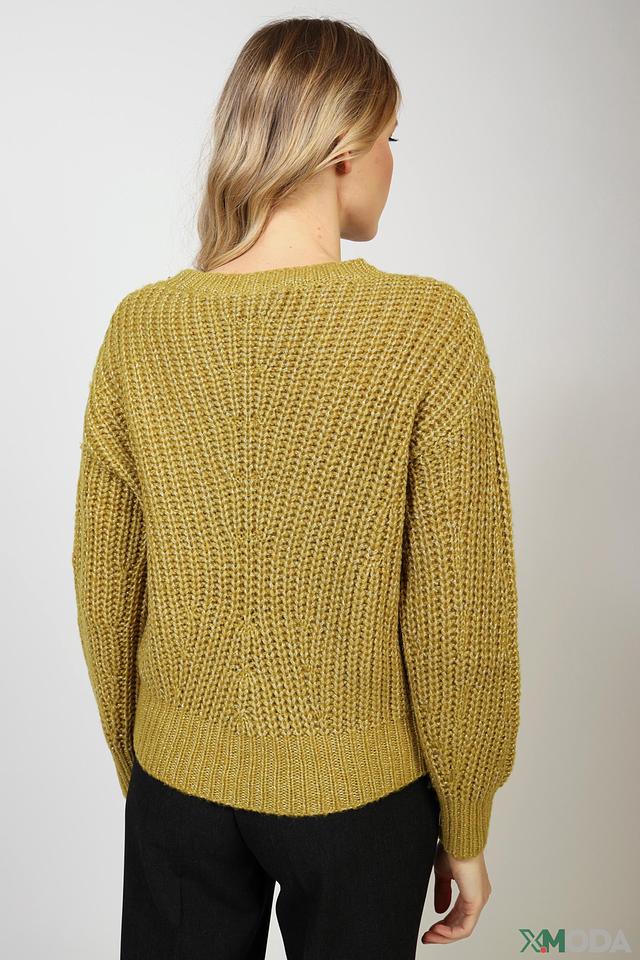Пуловер имеет свободный крой, который обеспечивает свободу движений и позволяет создавать многослойные образы. Горчичный цвет придает изделию особую изысканность и делает его универсальным для различных стилей.