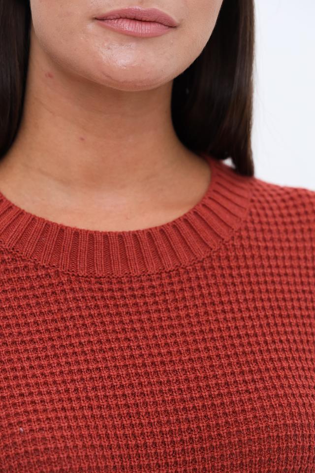 Цвет пуловера – терракотовый, насыщенный и благородный оттенок, который легко сочетается с различными элементами одежды. Этот пуловер идеально подойдет для создания повседневных и более элегантных образов. Он прекрасно сочетается с джинсами, брюками, юбками и аксессуарами.