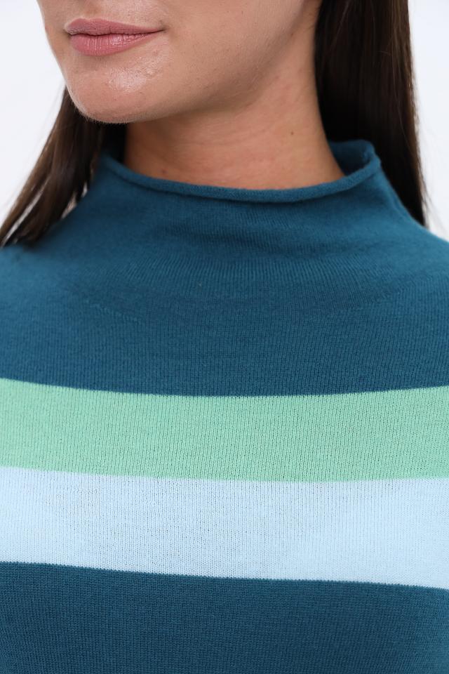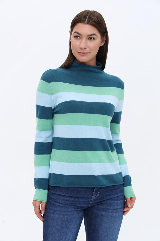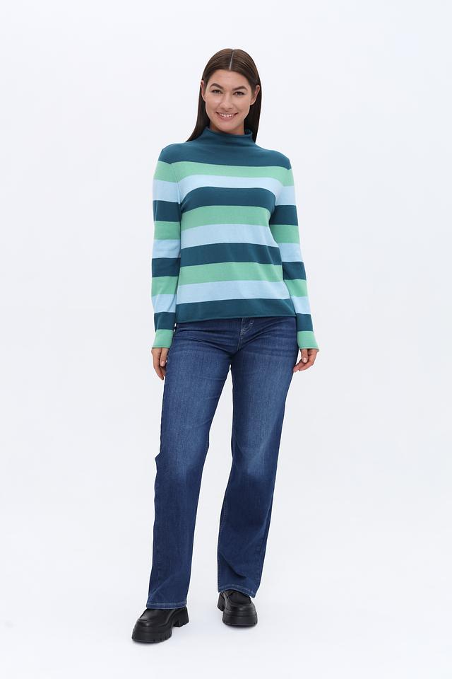 Женский пуловер Maerz бирюзового цвета с горизонтальными полосами станет отличным дополнением к вашему гардеробу. Модель выполнена из 100% шерсти, что обеспечивает комфорт и тепло в холодное время года. Состав: шерсть 100%