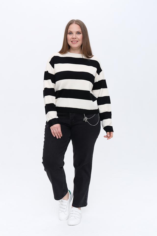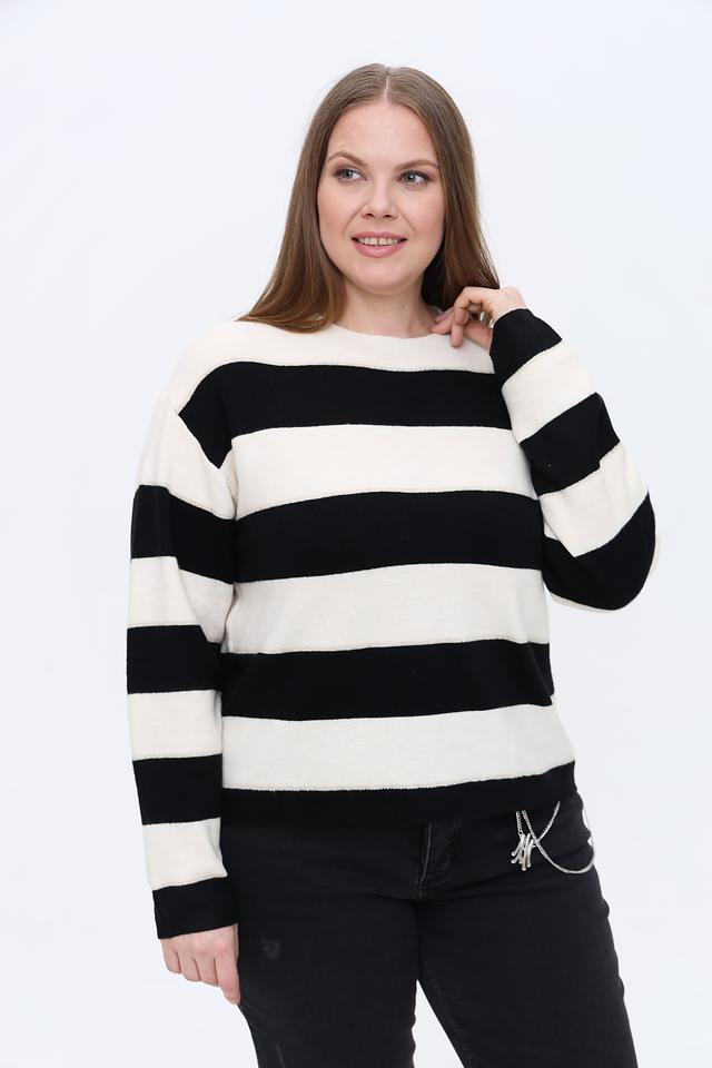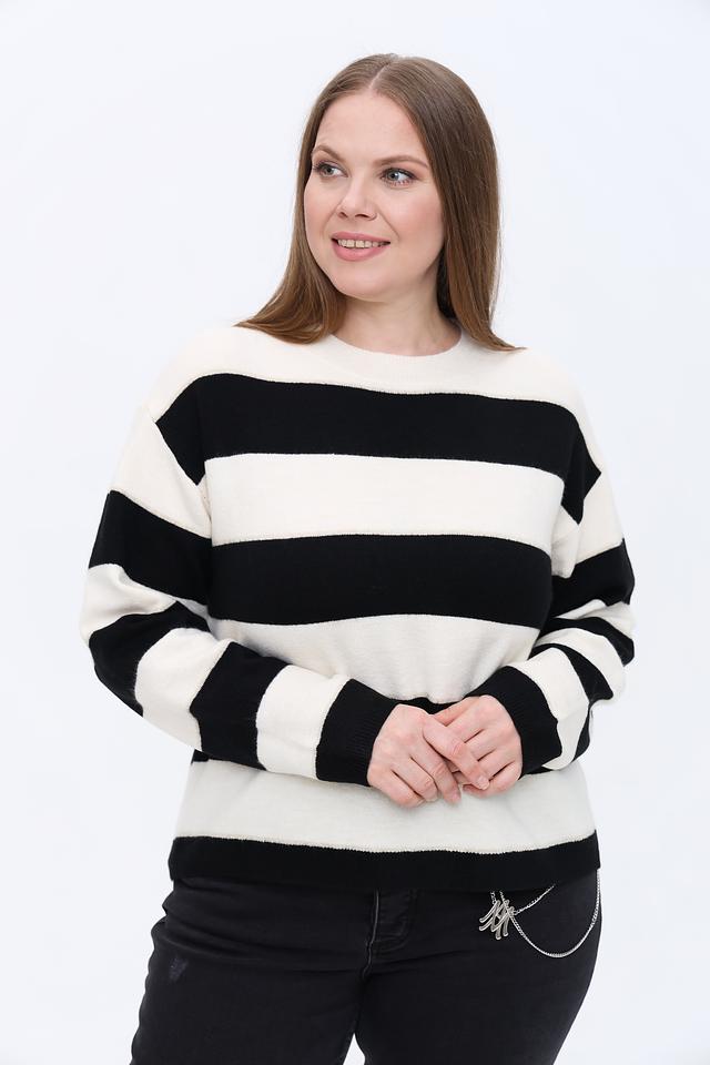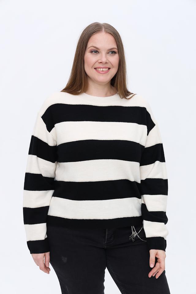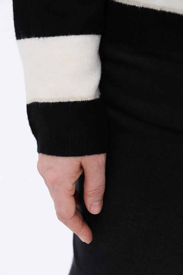 Женский пуловер Marc Aurel чёрно-белого цвета с классическим дизайном в полоску. Изготовлен из мягкого трикотажа с добавлением шерсти для комфорта и тепла. Идеально подходит для создания повседневных образов. Состав: полиакрил 63%, полиамид 26%, шерсть 5%, эластан 4%, метализ.нить 2%